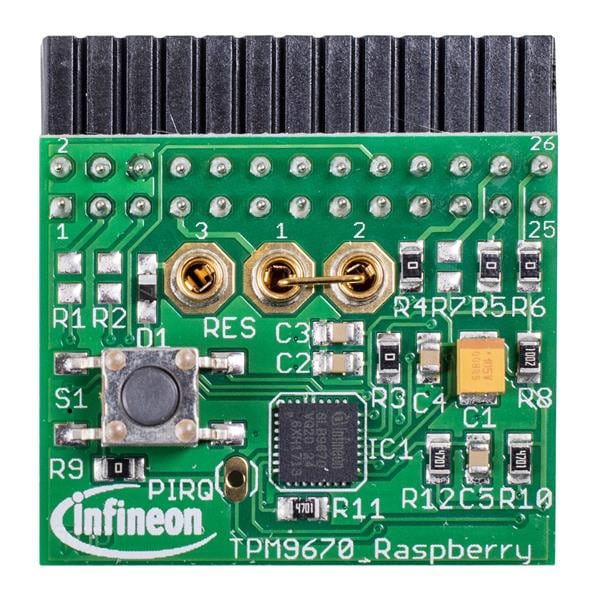 Infineon IRID9670TPM20LINUXTOBO1 Evaluation Boards OPTIGA TPM SLB 9670 TPM2.0 Infineon's Trusted Platform Module (TPM) SLB9670 is a fully TCG standard compliant TPM 2.0 with a SPI interface.