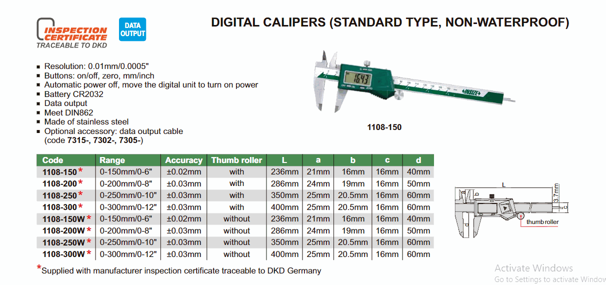 INSIZE 1108-250 Digital Caliper (0~250mm; standard model) | EMIN.CO.TH