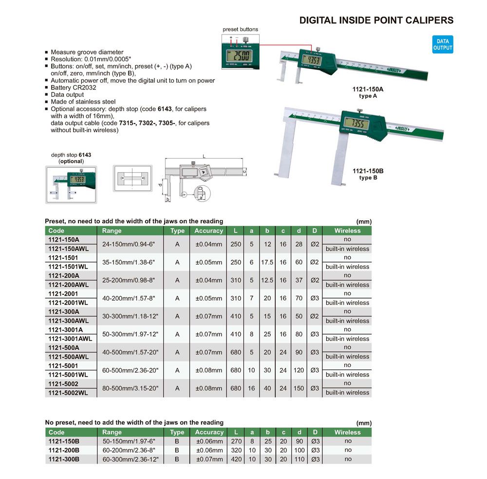 INSIZE 1121-200B Digital Iniside Point Caliper (60-200mm/2.36-8”; ±0.06mm; 0.01mm/0.0005”) | EMIN.CO.TH