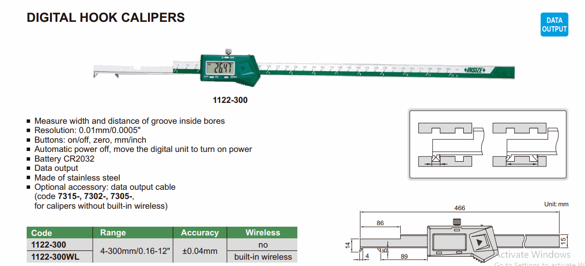 INSIZE 1122-300WL Digital Hook Caliper (4-300mm/0.16-12”; 0.01mm/0.0005”; Built-in wireless) | EMIN.CO.TH