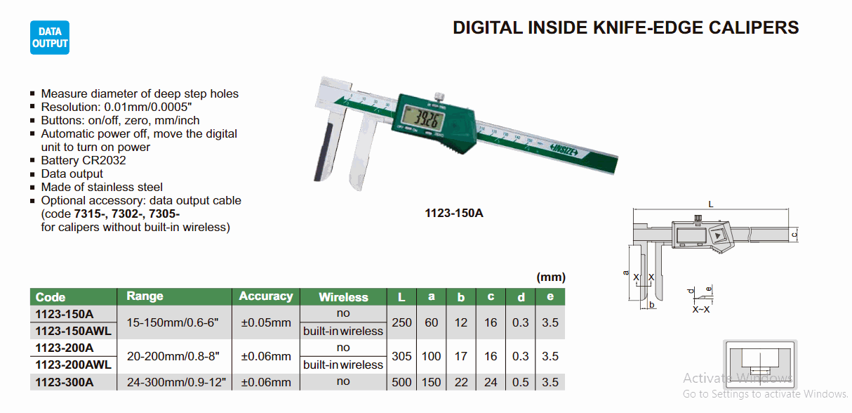 INSIZE 1123-200A Digital Inside Knife-Edge Caliper (20-200mm/0.8-8") | EMIN.CO.TH