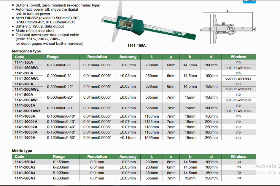 INSIZE 1141-500AWL Digital Depth Gage (0~500mm) | EMIN.CO.TH