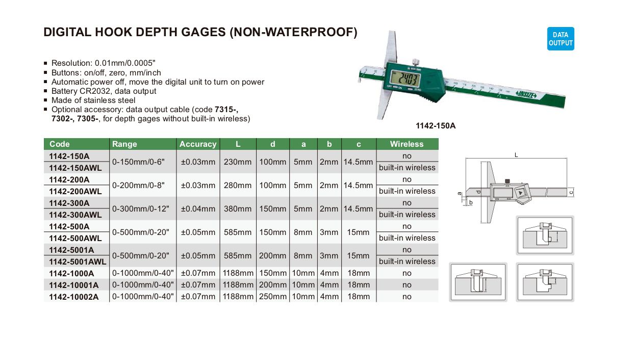 INSIZE 1142-10001A Digital Hook Depth Gage (0-1000mm/0-40") | EMIN.CO.TH