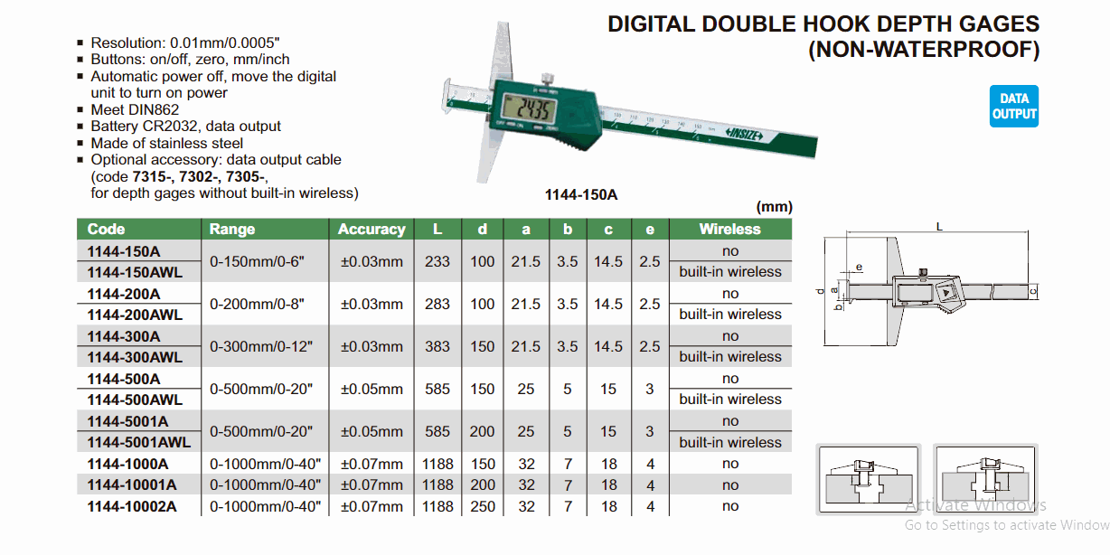 INSIZE 1144-150AWL Digital Double Hook Depth Gage (0~150mm; Double hook) | EMIN.CO.TH