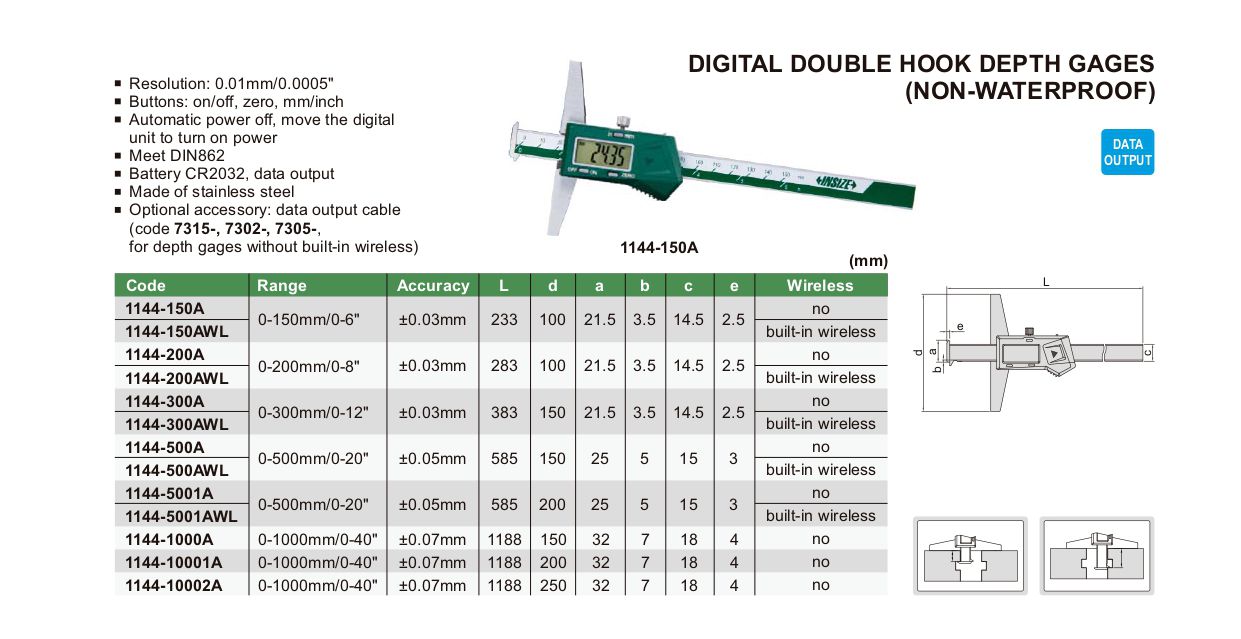 INSIZE 1144-500A Digital Double Hook Depth Gage (0-500mm/0-20") | EMIN.CO.TH