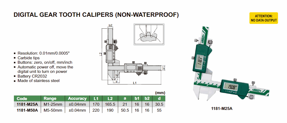 INSIZE 1181-M25A Digital Gear Tooth Caliper (M1-25mm, non-waterproof) | EMIN.CO.TH