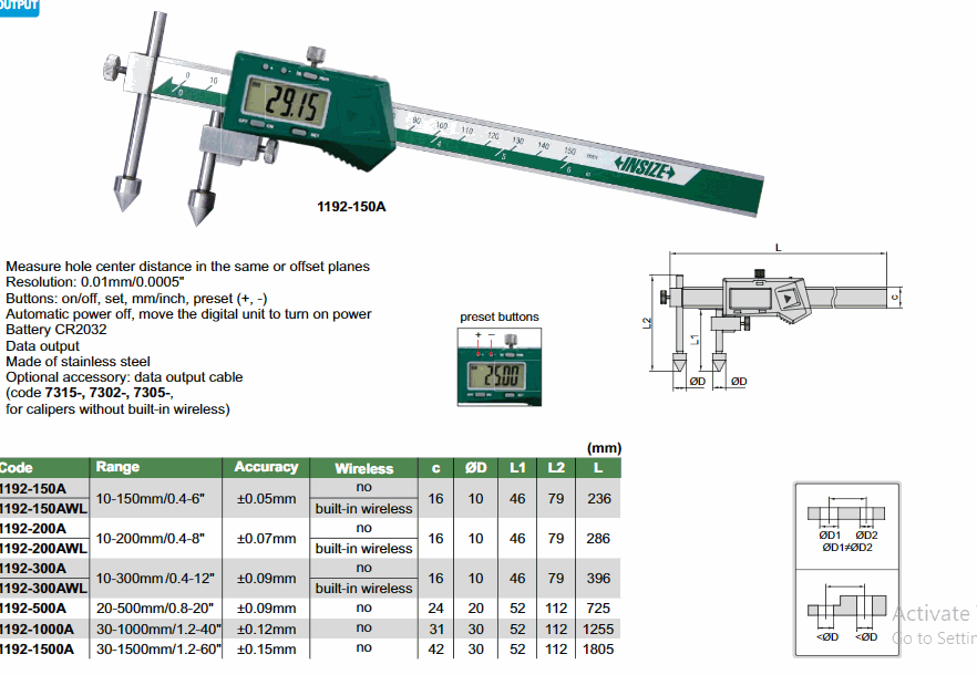 INSIZE 1192-500A Digital Offset Centerline Caliper (20~500mm) | EMIN.CO.TH