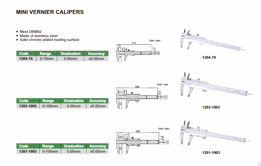 INSIZE 1201-1003 Mini Vernier Caliper (0~100mm) | EMIN.CO.TH