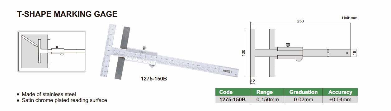 INSIZE 1275-150A T-Shape Marking Gage (0~150mm) | EMIN.CO.TH