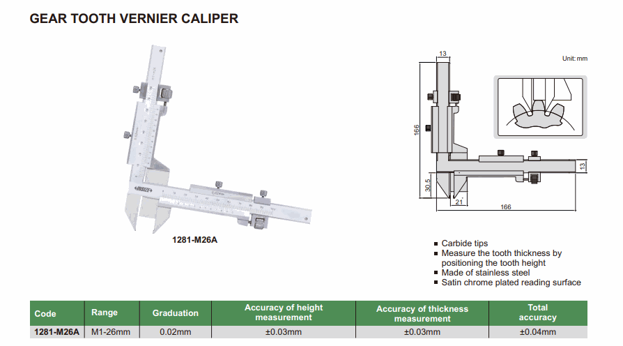 INSIZE 1281-M26A Gear Tooth Vernier Caliper (M1-26mm; 0.02mm) | EMIN.CO.TH