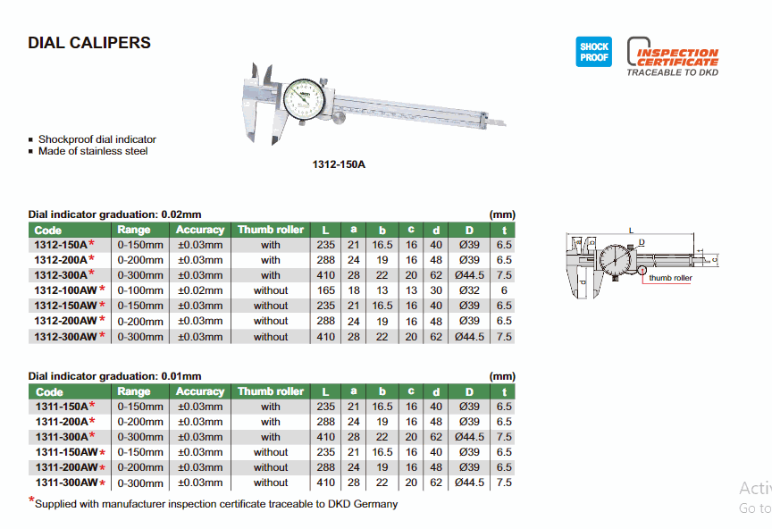 INSIZE 1312-300AW Dial Caliper (0-300mm) | EMIN.CO.TH