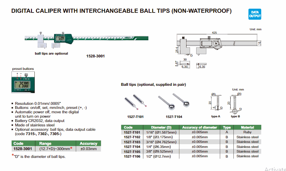 INSIZE 1528-3001 Digital Caliper With Interchangeable Ball Tip ((12.7+D)~300mm) | EMIN.CO.TH