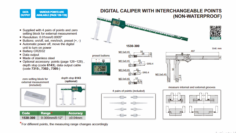 INSIZE 1530-300 Digital Caliper With Interchangeable Points (0~300mm) | EMIN.CO.TH