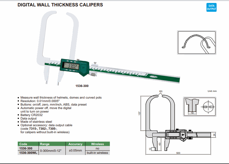 INSIZE 1536-300 Digital Wall Thickness Caliper (0-300mm/0-12”; no built-in wireless) | EMIN.CO.TH