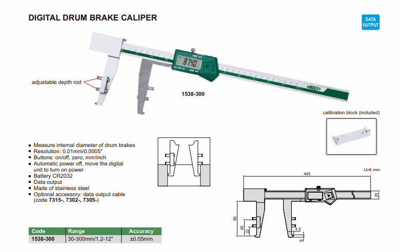 INSIZE 1538-300 Digital Drum Brake Caliper (30-300mm/1.2-12”; 0.01mm/0.0005”) | EMIN.CO.TH