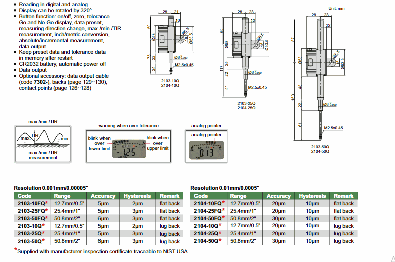 INSIZE 2103-50F Digital Indicator (Advanced type) (50.8mm/2") | EMIN.CO.TH