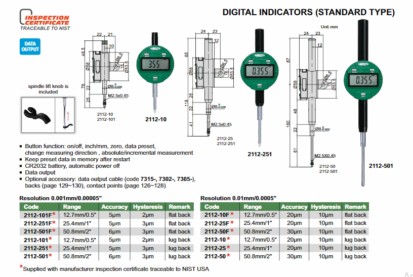 INSIZE 2112-501F Digital Indicator (Standard type) (50.8mm/2"; 0.001mm/0.00005") | EMIN.CO.TH