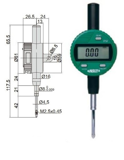 INSIZE 2115-25 WATERPROOF DIGITAL INDICATOR (25.4mm/0.01mm) | EMIN.CO.TH