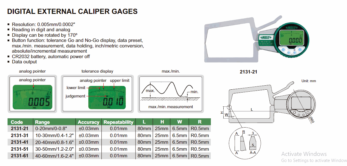 INSIZE 2131-61 Digital External Caliper Gage (40-60mm/1.6-2.4") | EMIN.CO.TH