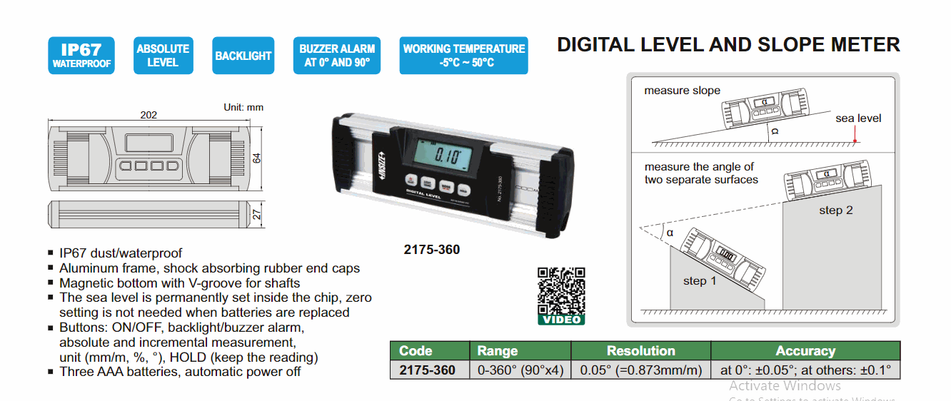 INSIZE 2175-360 Digital Level And Slope Meter (0~360°(90°x4)) | EMIN.CO.TH