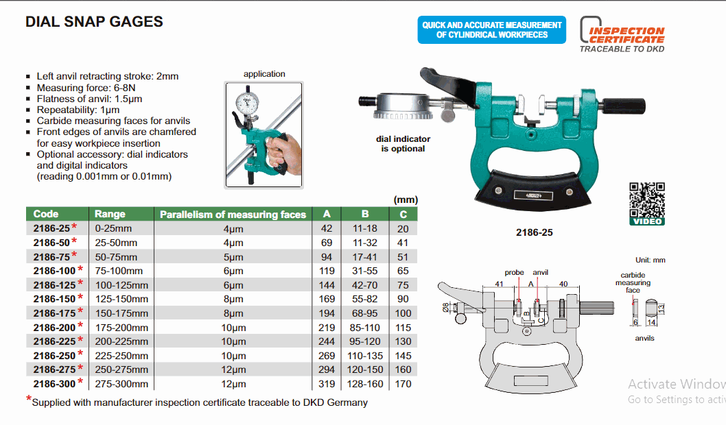 INSIZE 2186-100 Dial Snap Gage (75-100mm) | EMIN.CO.TH