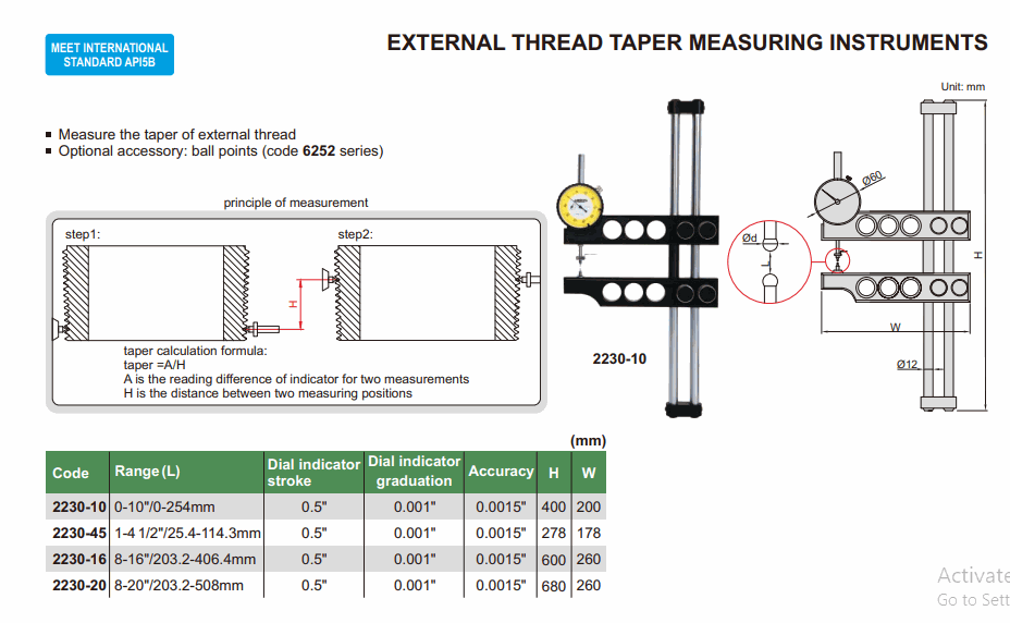 INSIZE 2230-16 External thread taper measuring instrument (8-16”/203.2-406.4mm; 0.001”) | EMIN.CO.TH