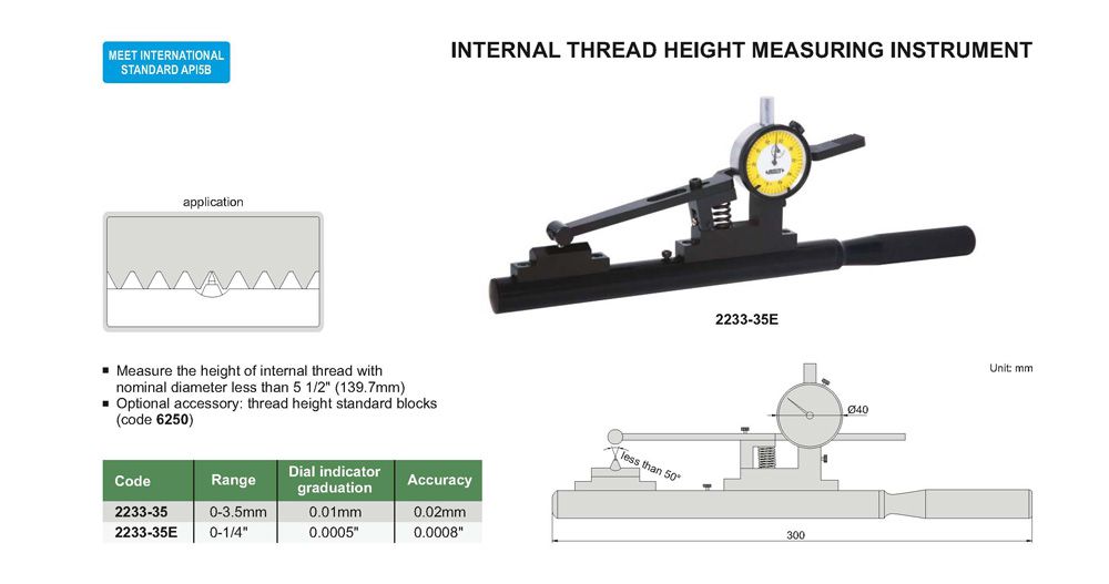 INSIZE 2233-35 Internal Thread Height Measuring Instrument (0-3.5mm; 0.01mm; 0.02mm) | EMIN.CO.TH