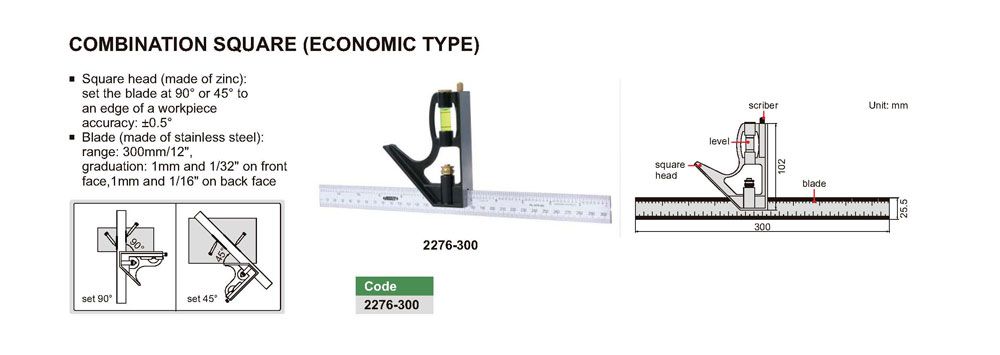 INSIZE 2276-300 Combination Square (300mm/12", ±0.5°) | EMIN.CO.TH
