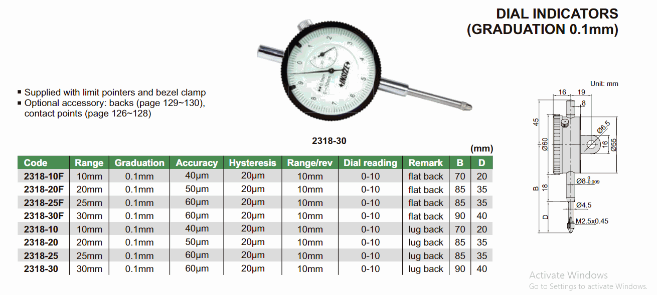 INSIZE 2318-25F Dial Indicator (25mm; 0.1mm) | EMIN.CO.TH
