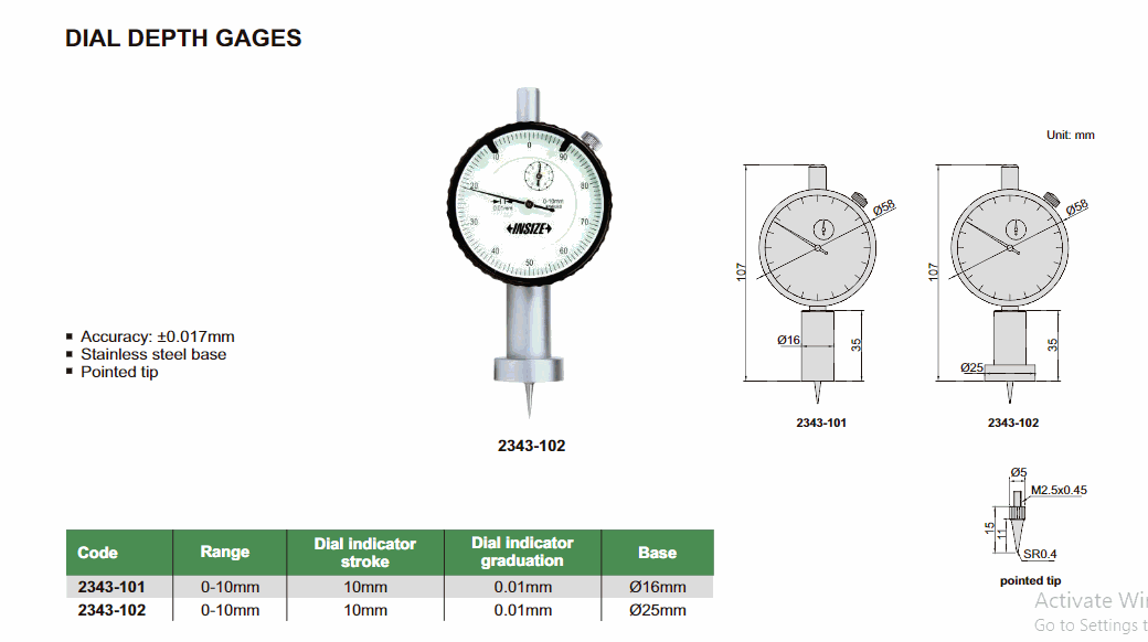 INSIZE 2343-102 Dial Depth Gage (0-10mm) | EMIN.CO.TH