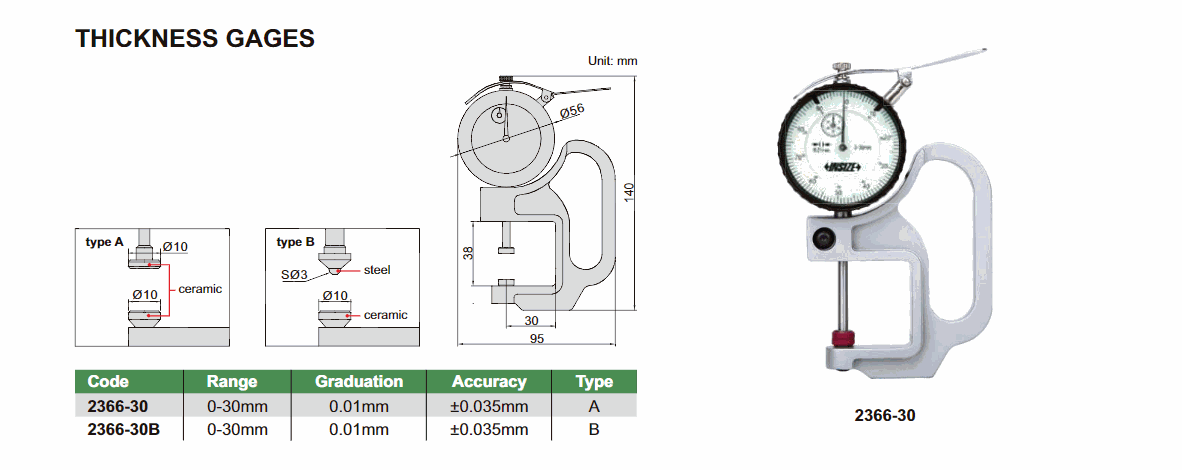 INSIZE 2366-30B Thickness Gage (0-30mm; type B) | EMIN.CO.TH