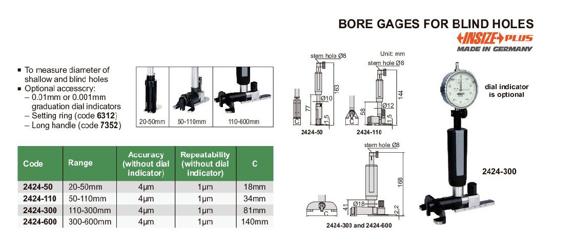 INSIZE 2424-600 Bore Gage For Blind Holes (300-600mm,4µm) | EMIN.CO.TH