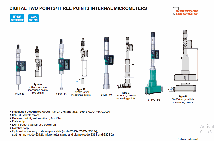 INSIZE 3127-12 Digital Three Points Internal Micrometer (10-12mm/0.39-0.47"; with setting ring) | EMIN.CO.TH