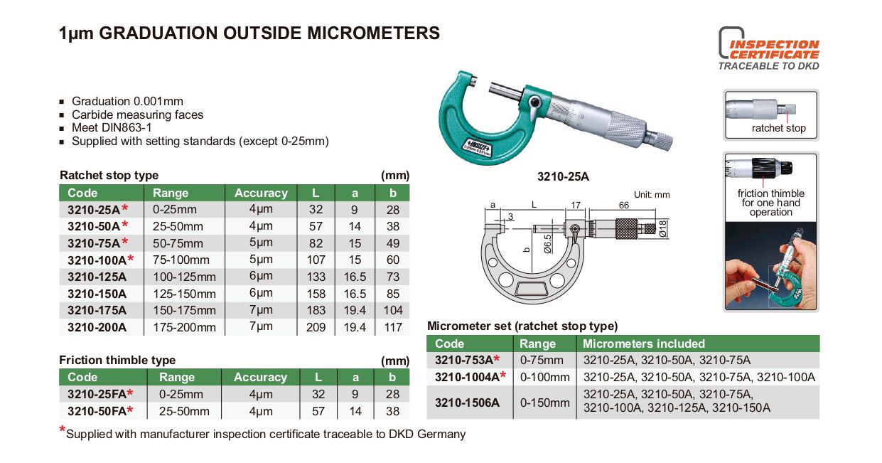INSIZE 3210-25A Graduation Outside Micrometer (0-25mm/0.001mm) | EMIN.CO.TH