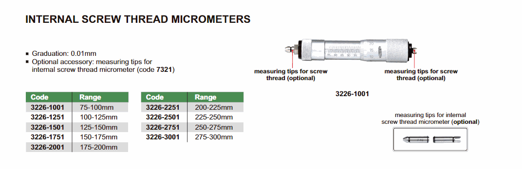 INSIZE 3226-2251 Internal Screw Thread Micrometer (200-225mm; 0.01mm) | EMIN.CO.TH