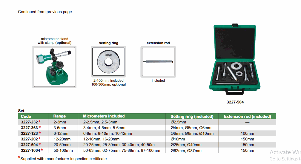 INSIZE 3227-4 Two Points Internal Micrometer (3-4mm; with setting ring) | EMIN.CO.TH