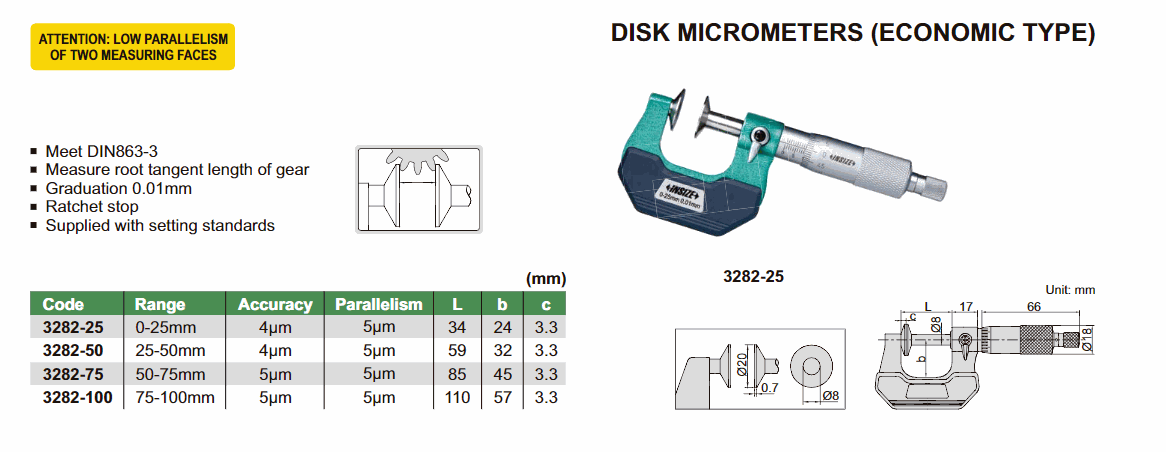 INSIZE 3282-50 Disk Micrometer (25-50mm; 0.01mm) | EMIN.CO.TH