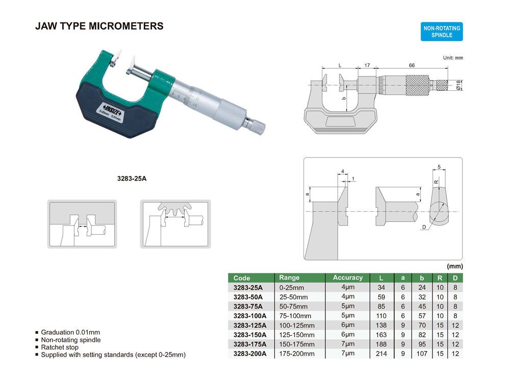 INSIZE 3283-150A Jaw Type Micrometer (125-150mm; 0.01mm) | EMIN.CO.TH
