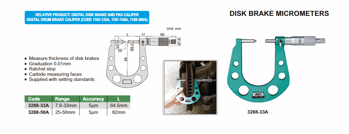 INSIZE 3288-50A Disk Brake Micrometer (25-50mm; 0.01mm) | EMIN.CO.TH