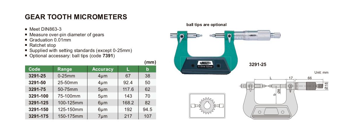INSIZE 3291-175 Gear Tooth Micrometer (150-175mm) | EMIN.CO.TH