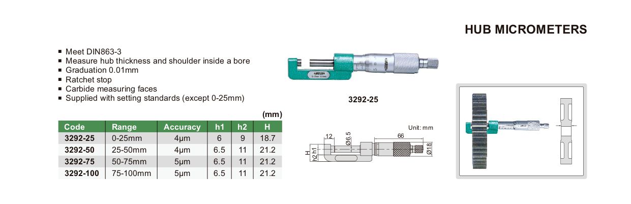 INSIZE 3292-25 Hub Micrometer (0-25mm; 0.01mm) | EMIN.CO.TH