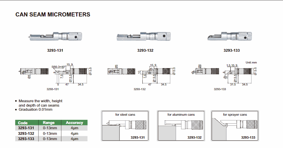 INSIZE 3293-132 Can Seam Micrometer (0-13mm; 0.01mm) | EMIN.CO.TH