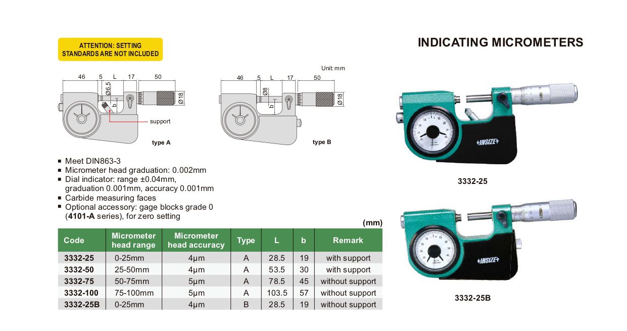 INSIZE 3332-75 Indicating Micrometer (50-75mm) | EMIN.CO.TH