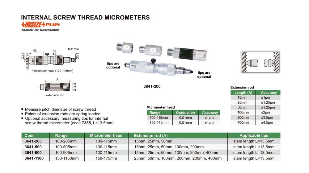 INSIZE 3641-200 Internal Screw Thread Micrometer (100-205mm) | EMIN.CO.TH