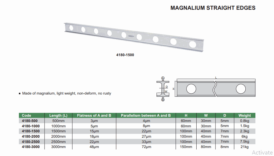 INSIZE 4180-2000 Magnalium Straight Edge (2000mm) | EMIN.CO.TH