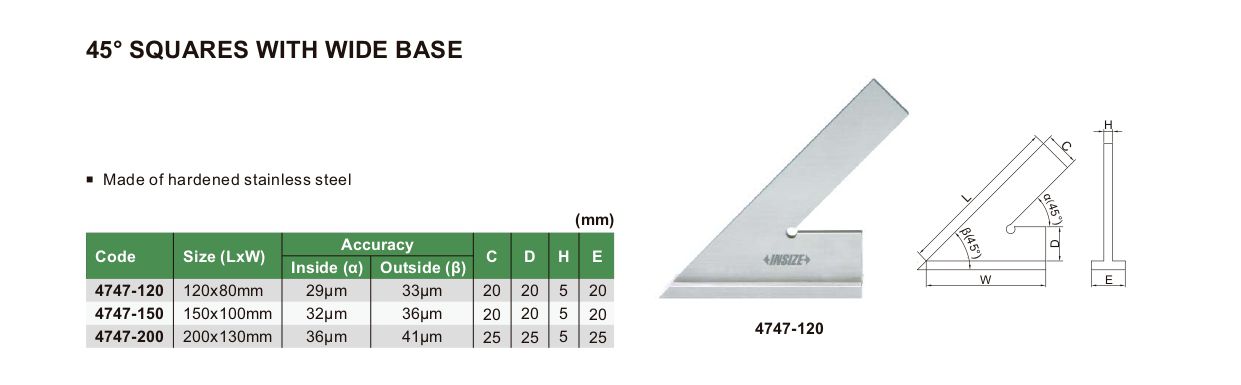 INSIZE 4747-150 45° Square With Wide Base (45°; 150x100mm) | EMIN.CO.TH