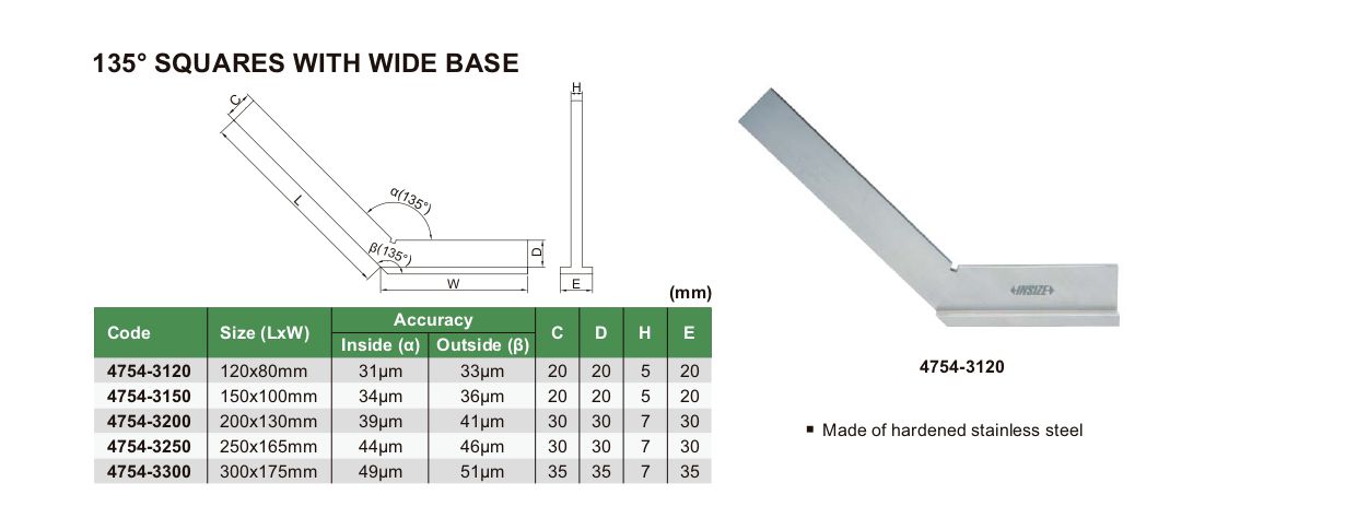 INSIZE 4754-3120 135° Square With Wide Base (135°; 120x80mm) | EMIN.CO.TH