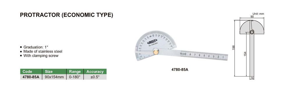 INSIZE 4780-85A Protractor (0-180°; ±0.5°; 1°) | EMIN.CO.TH