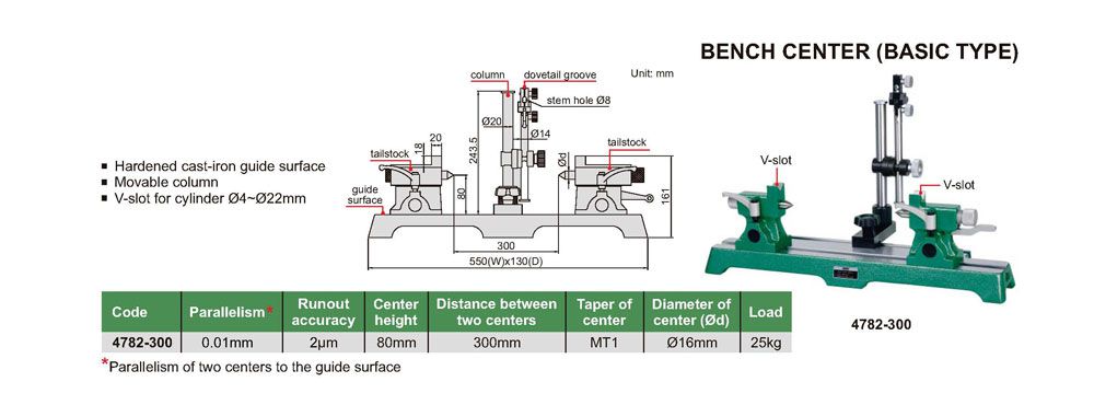 INSIZE 4782-300 Bench Center (0.01mm; 300mm; 80mm) | EMIN.CO.TH