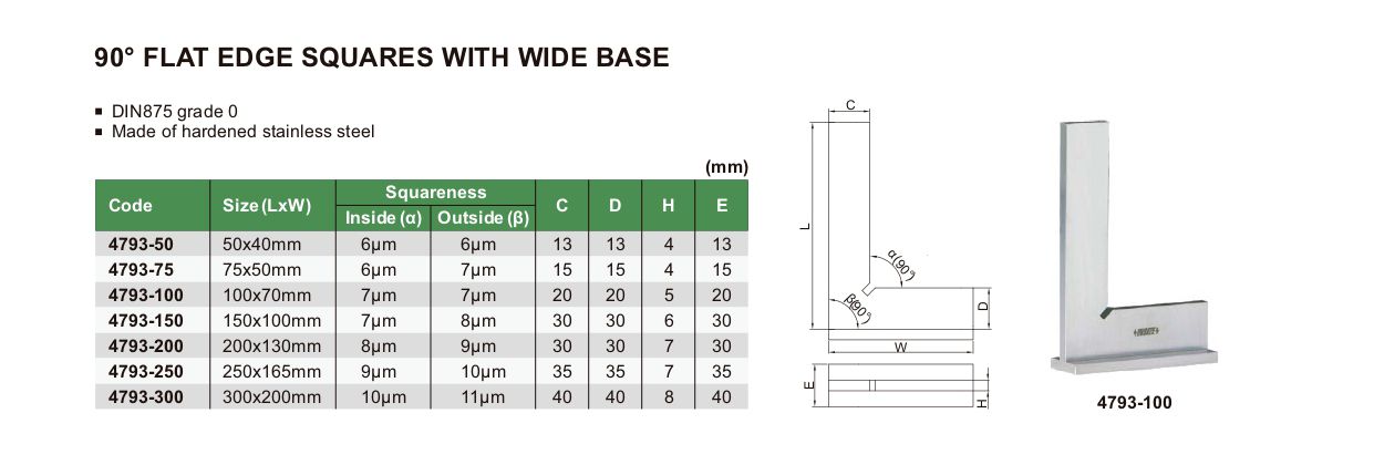 INSIZE 4793-150 90° Flat Edge Square With Wide Base (150x100mm) | EMIN.CO.TH